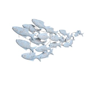 This breathtaking 130cm (Length) x 5cm (Depth) x 50cm (Height) Swimming Fish Turquoise Wall Hanging is a masterclass in coastal artistry, designed to bring the fluid, rhythmic movement of a school of fish into your home