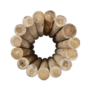 The vertical arrangement of the logs creates a striking rhythmic pattern, making it a perfect bohemian decor accent or a rustic addition to a modern organic interior