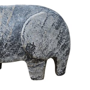 Expertly crafted with a minimalist, rounded silhouette, this artisan ceramic figurine features a weathered stone grey finish with a heavy distressed patina, mimicking the rugged beauty of natural volcanic rock