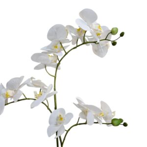 Add a touch of refined luxury to your interior with our Faux White Orchid, a masterfully crafted artificial floral display that captures the delicate grace of a blooming “Moth Orchid.” Standing at 54cm in height, this lifelike plant features two graceful stems laden with soft, silk-touch white petals and vibrant yellow centers, perfectly mimicking a fresh, professional botanical arrangement