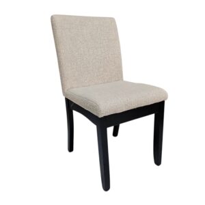 Measuring 58cm (L) x 57cm (W) x 75cm (H), this chair is crafted from high-quality polyester fabric with a ribbed texture that adds depth and sophistication
