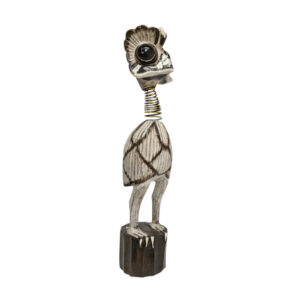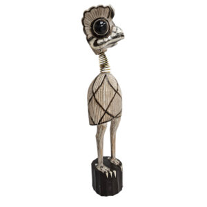 The bird’s expressive, oversized eyes and unique rustic finish make it a true conversation starter, perfect for eclectic, rustic, or boho-inspired interiors. Whether displayed in an entryway, living room, or as part of a whimsical collection, this charming piece brings humor and artistic flair to your space