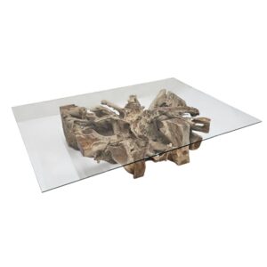 Crafted from the highly durable wood of the teak tree, the intricate, naturally occurring shapes of the root are beautifully highlighted beneath the transparent glass. Since no two teak roots are exactly alike, you are guaranteed a one-of-a-kind statement piece that is as robust as it is beautiful