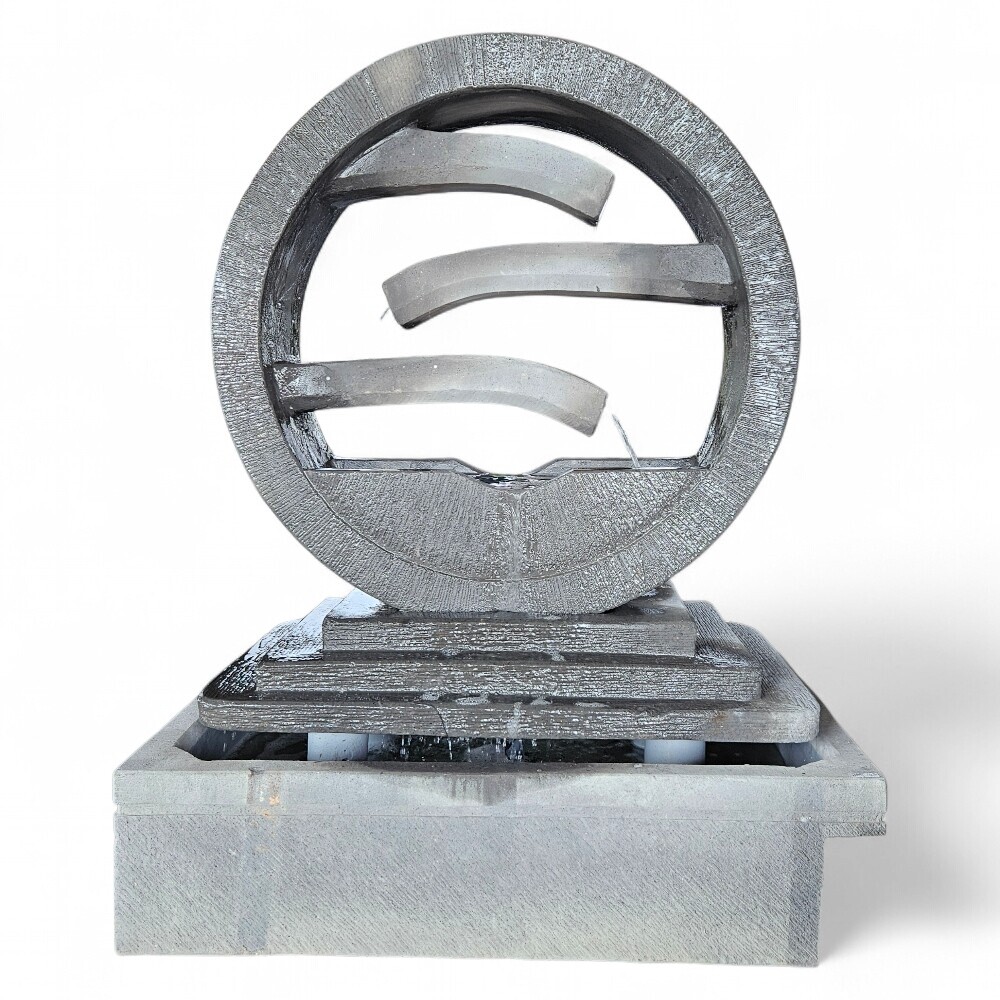 Meticulously handcrafted with three distinct tiers and a unique wheel-inspired motif, this 1-meter-tall water feature creates a sophisticated sculptural focal point for any upscale garden or patio