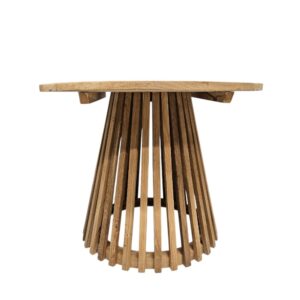 Expertly handcrafted from high-quality teak, this table features a distinctive slatted design that offers a light, airy appearance while maintaining exceptional structural integrity