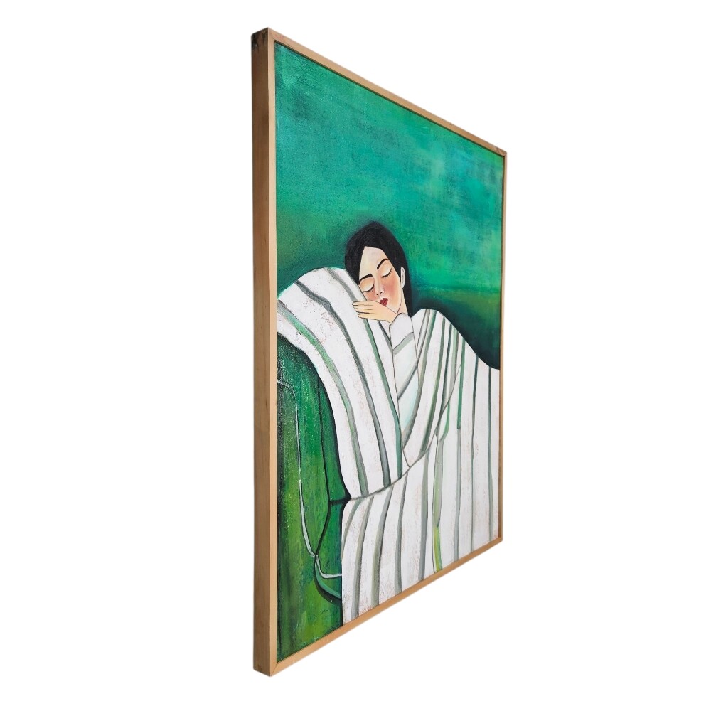 The rich green tones and tranquil composition create a focal point of relaxation and artistic calm, making it the perfect addition to a living room, bedroom, or quiet study area, instantly elevating the room’s aesthetic appeal