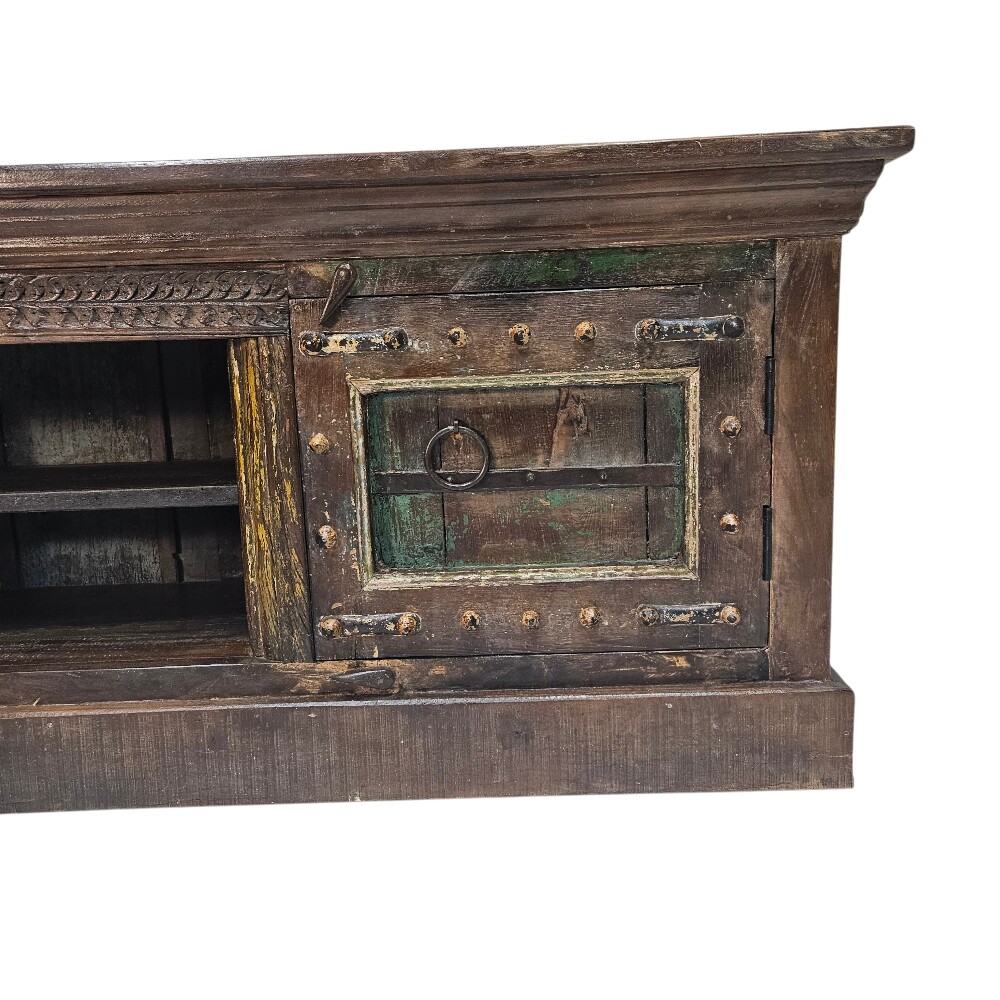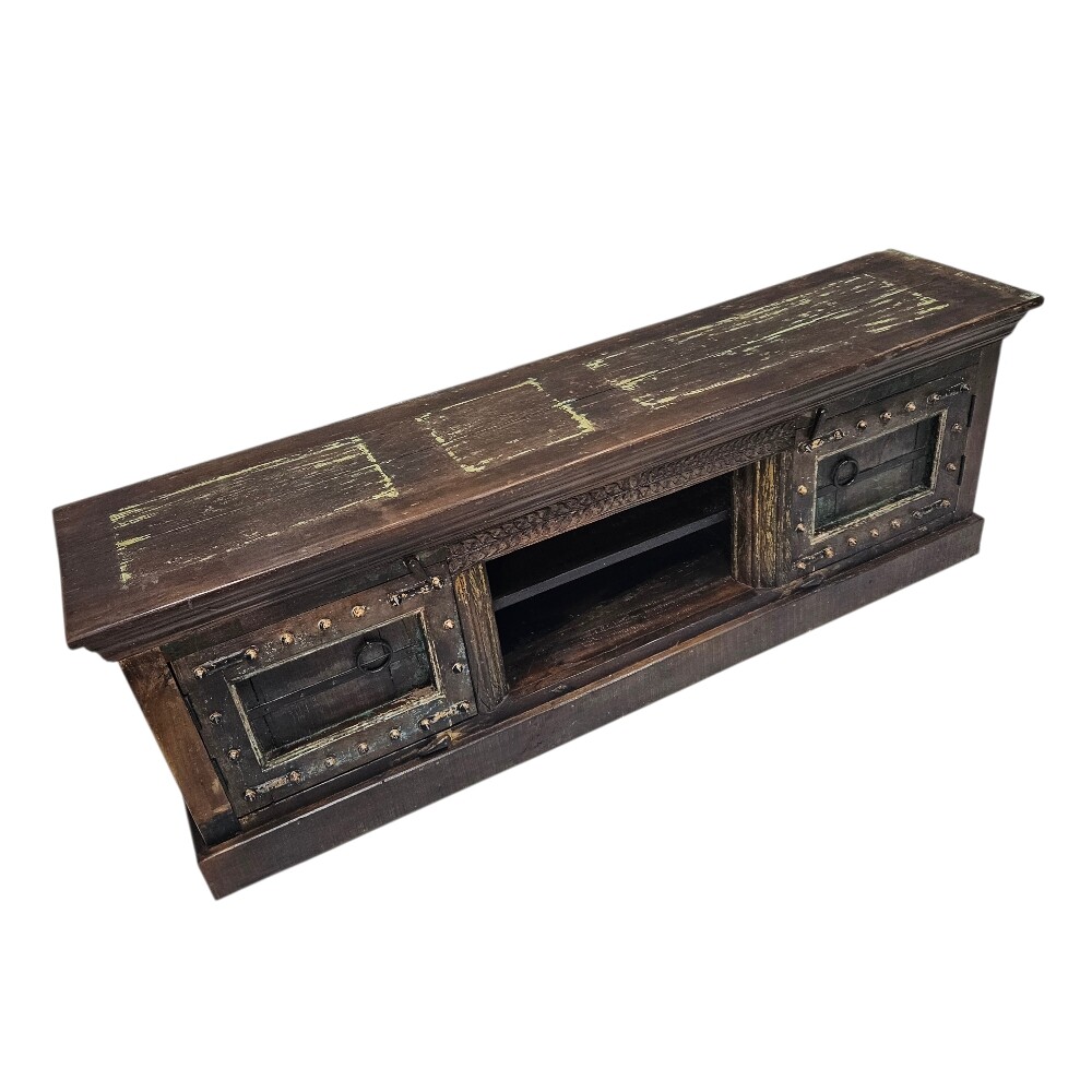 This vintage-inspired 183cm (Length) x 43cm (Depth) x 58cm (Height) Adria Fleur Mango Wood Plasma Unit is a soulful centerpiece designed to bring old-world character and artisan craftsmanship to your modern entertainment space