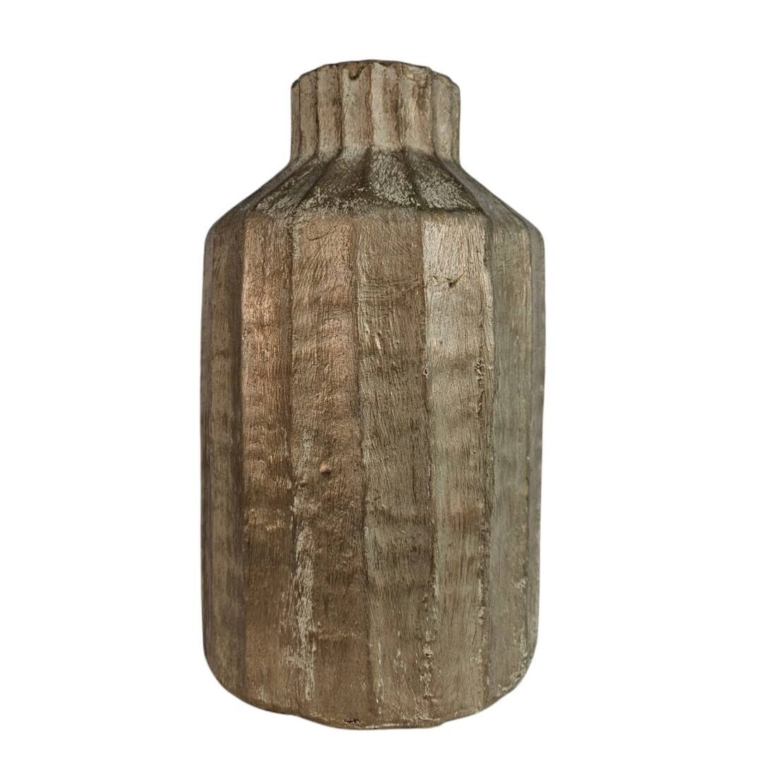Crafted with a textured, antique-inspired finish, its earthy tones and vertical ridges evoke the look of aged pottery with a modern twist