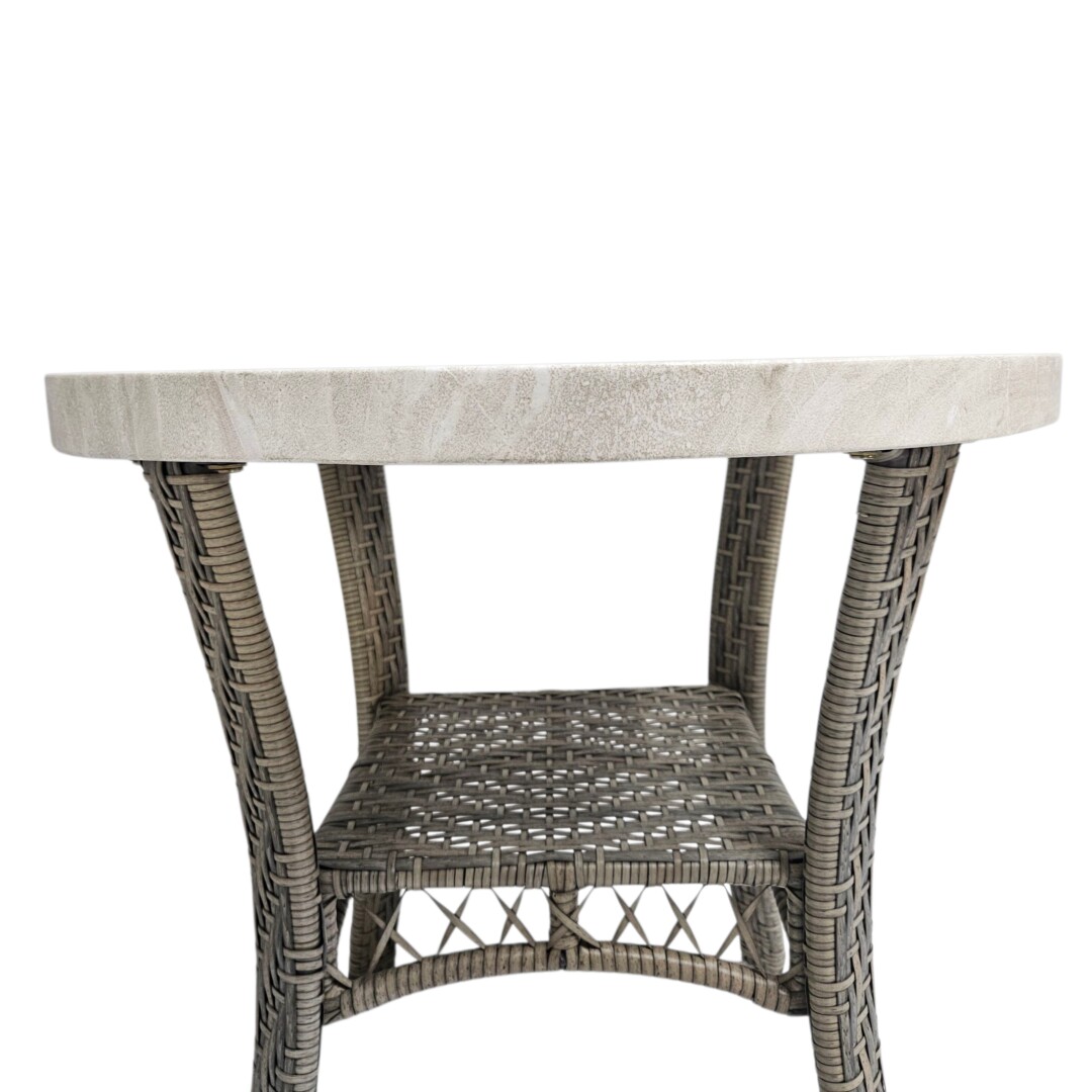 This luxurious set features a transitional, deep-seating style, combining durable, rustic-look synthetic rattan woven over a strong, rust-proof aluminum frame. The large, light-toned tabletop adds a sophisticated, contemporary flair
