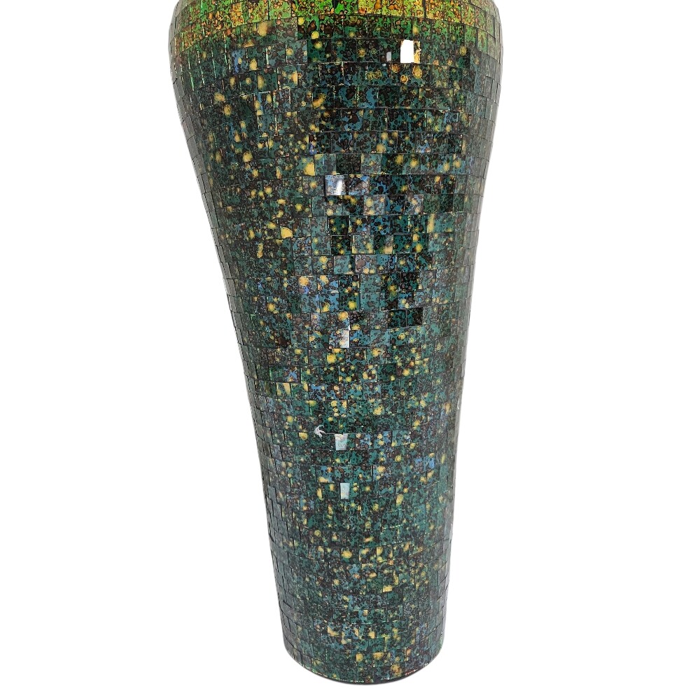 Beneath the shimmering glass exterior lies a heavy-duty pottery core, providing the structural integrity and weight necessary for a floor-standing piece of this scale. The substantial weight ensures excellent stability, while the hand-finished nature of the mosaic means that no two vases are exactly alike. This durable construction, combined with its timeless Mediterranean-inspired design, makes it a lasting investment for the sophisticated South African home