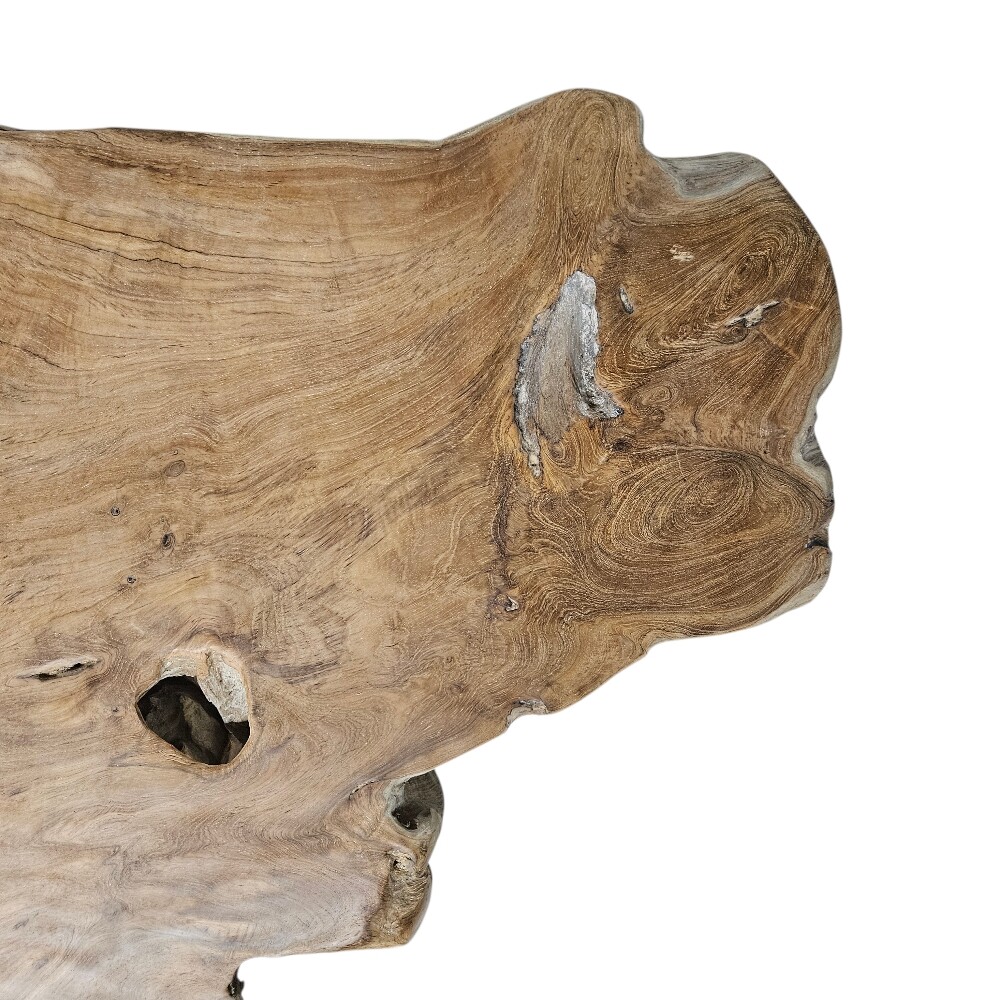 Make a bold statement with this organically shaped teak root bar table, measuring 123 (Length) x 80 (Depth) x 100 cm (Height). Crafted from sustainably sourced teak roots, each table is a unique work of natural art, with intricate textures and patterns that highlight the wood’s stunning organic beauty