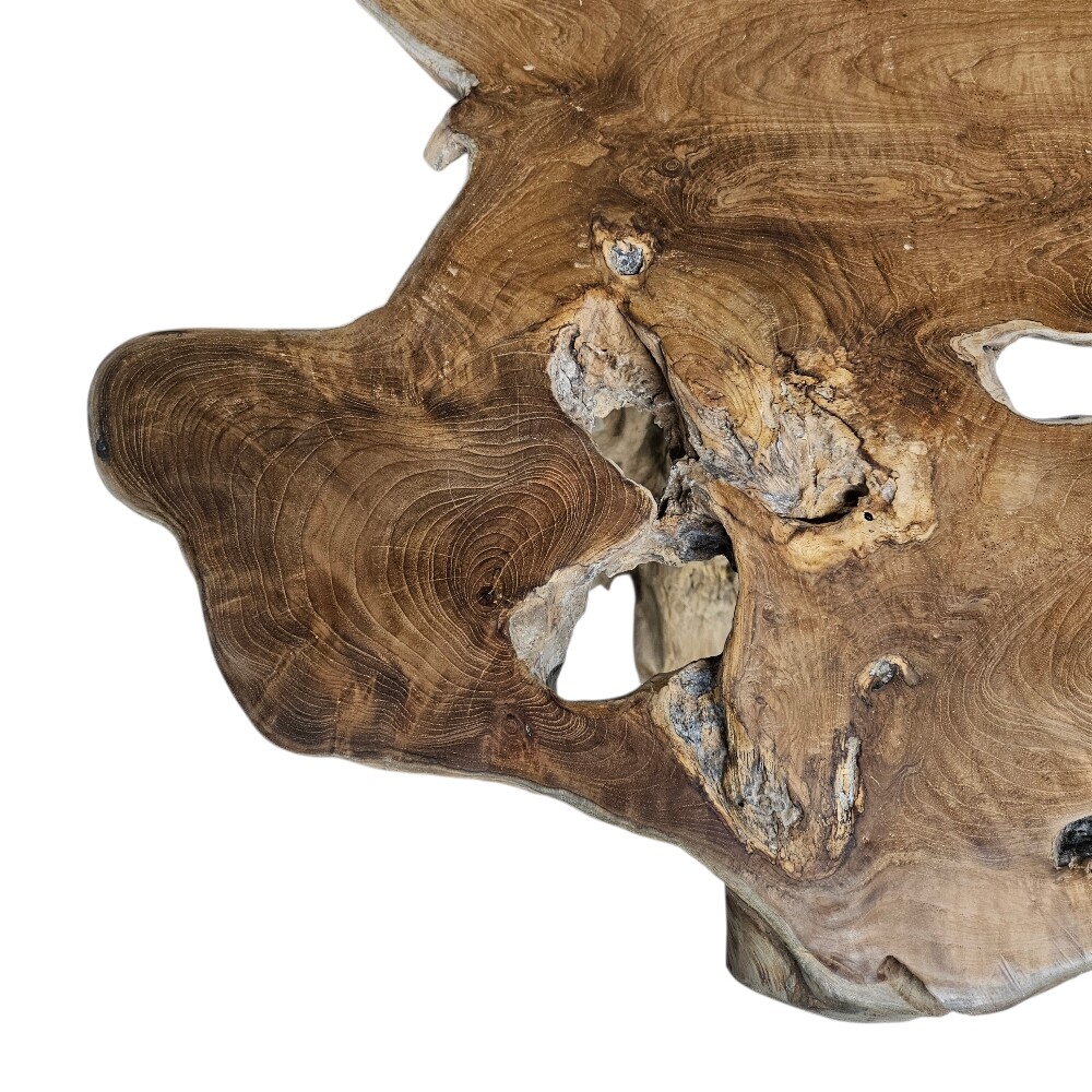 Make a bold statement with this organically shaped teak root bar table, measuring 123 (Length) x 80 (Depth) x 100 cm (Height). Crafted from sustainably sourced teak roots, each table is a unique work of natural art, with intricate textures and patterns that highlight the wood’s stunning organic beauty