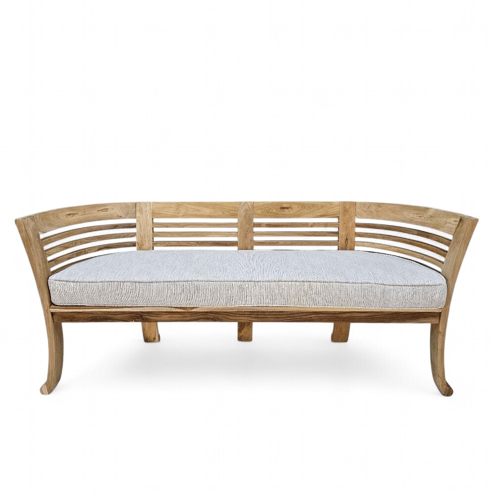 Expertly constructed from high-grade sustainable teak, this expansive occasional bench celebrates the enduring strength and rich, warm honey tones of premium timber. The wood is polished to a smooth, tactile finish that meticulously highlights the intricate natural grains and unique character of the teak. This durable construction ensures a sturdy, high-quality piece that brings a sense of timeless, organic luxury to any modern or classic South African interior