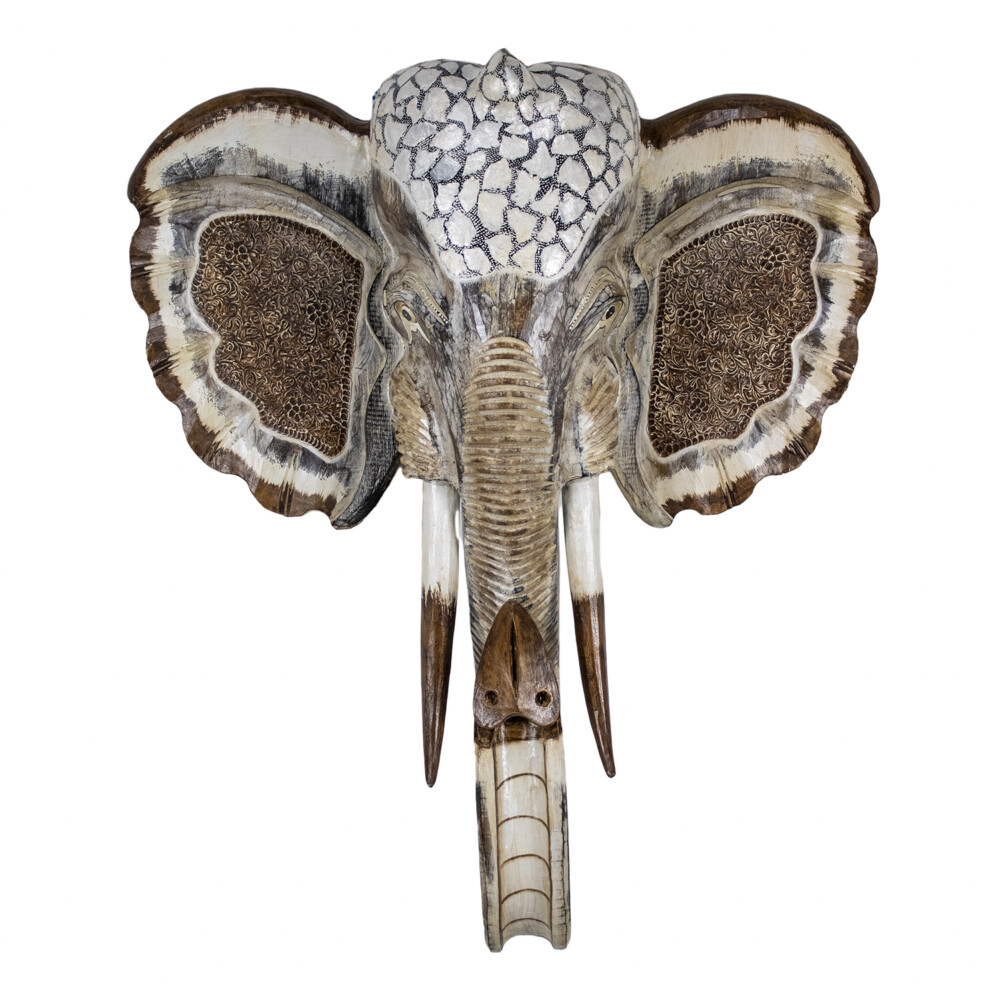 Carved Elephant Mask Wall Decor