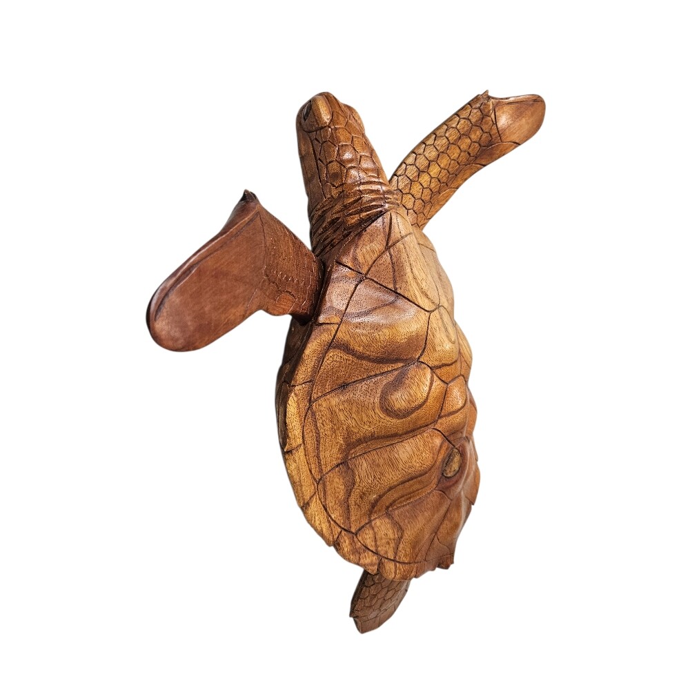 Expertly hand-carved from solid sustainable wood, this wall sculpture is a celebration of natural movement and meticulous detail. The turtle is depicted in a dynamic “swimming” pose, designed to appear as if it is gliding effortlessly across your wall. The shell features intricate, hand-etched hexagonal scales, while the head and limbs showcase a realistic, weathered texture that highlights the wood’s multi-tonal grain and warm honey hues. This high level of craftsmanship ensures that each piece is a unique work of art with its own distinct character