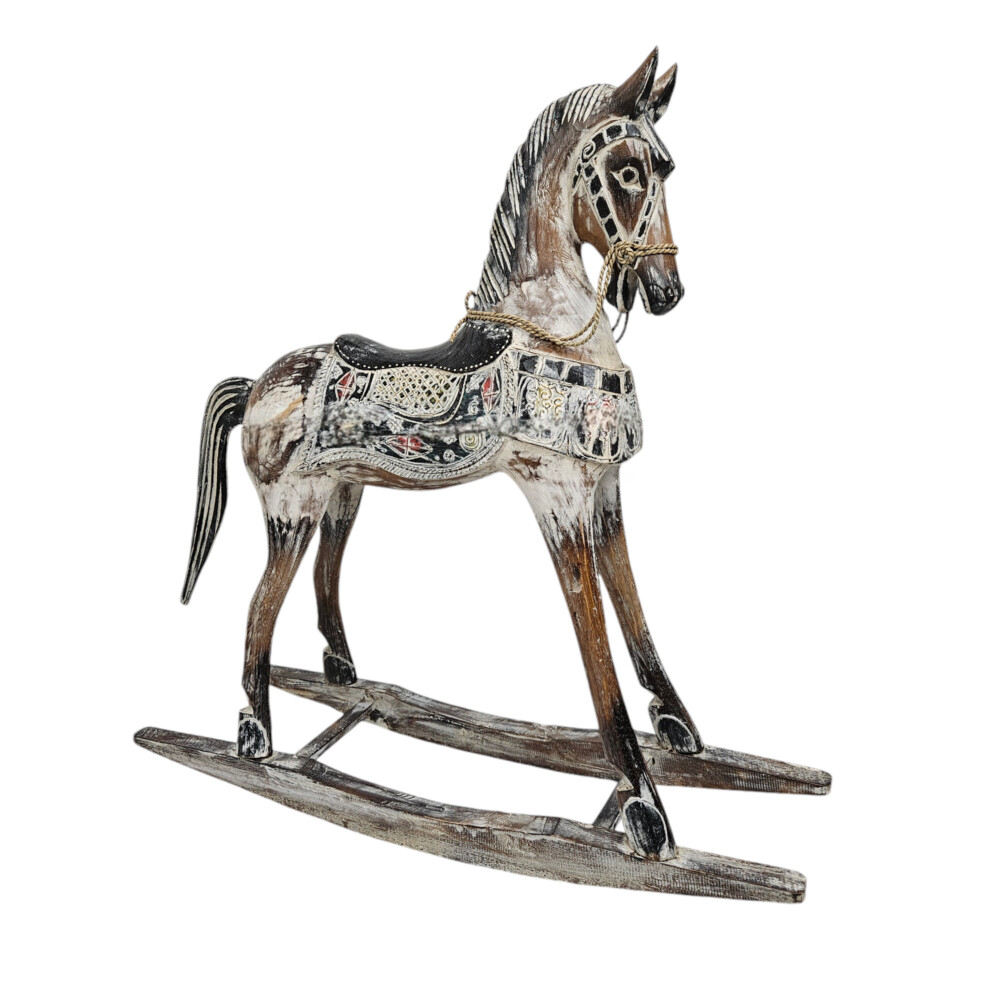 The hand-painted accents and carefully carved saddle make this rocking horse a standout addition to any room. Perfect for adding a nostalgic, whimsical element to living rooms, bedrooms, or nurseries, this rocking horse brings a sense of tradition and artistry into your home décor