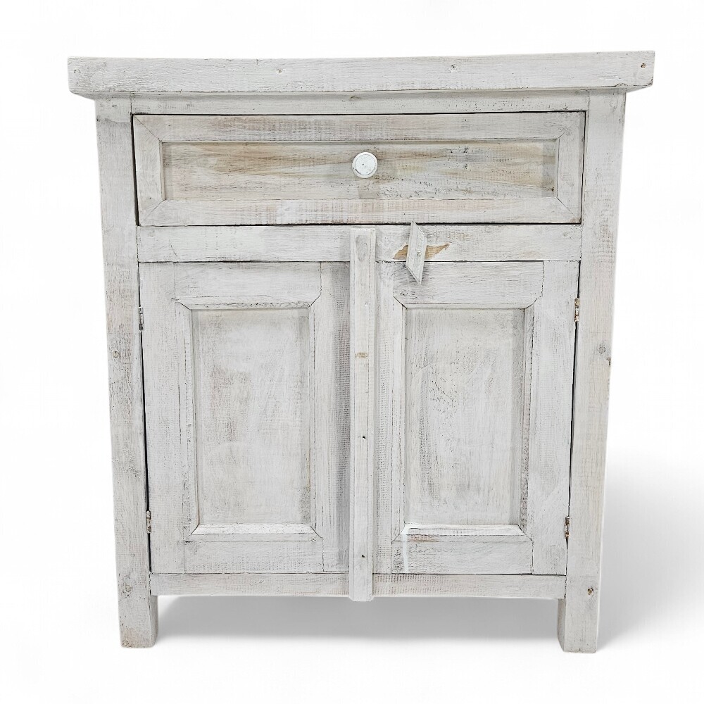 The functional design features a top drawer for smaller essentials and a spacious double-door cabinet, providing a generous coastal storage solution for everything from beach towels to bulky bedside reads