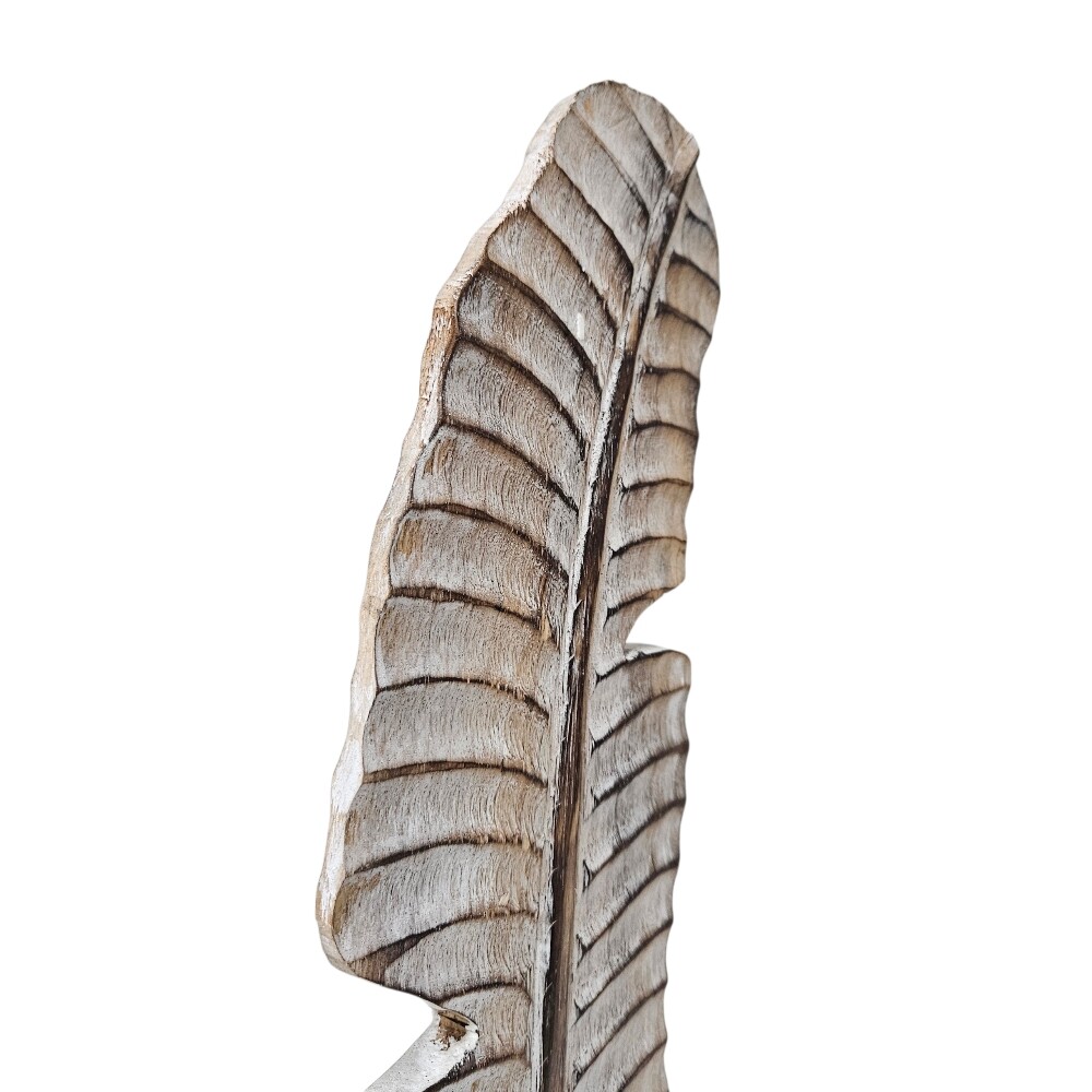 Add a tropical flair to your décor with this beautifully carved banana leaf on a stand