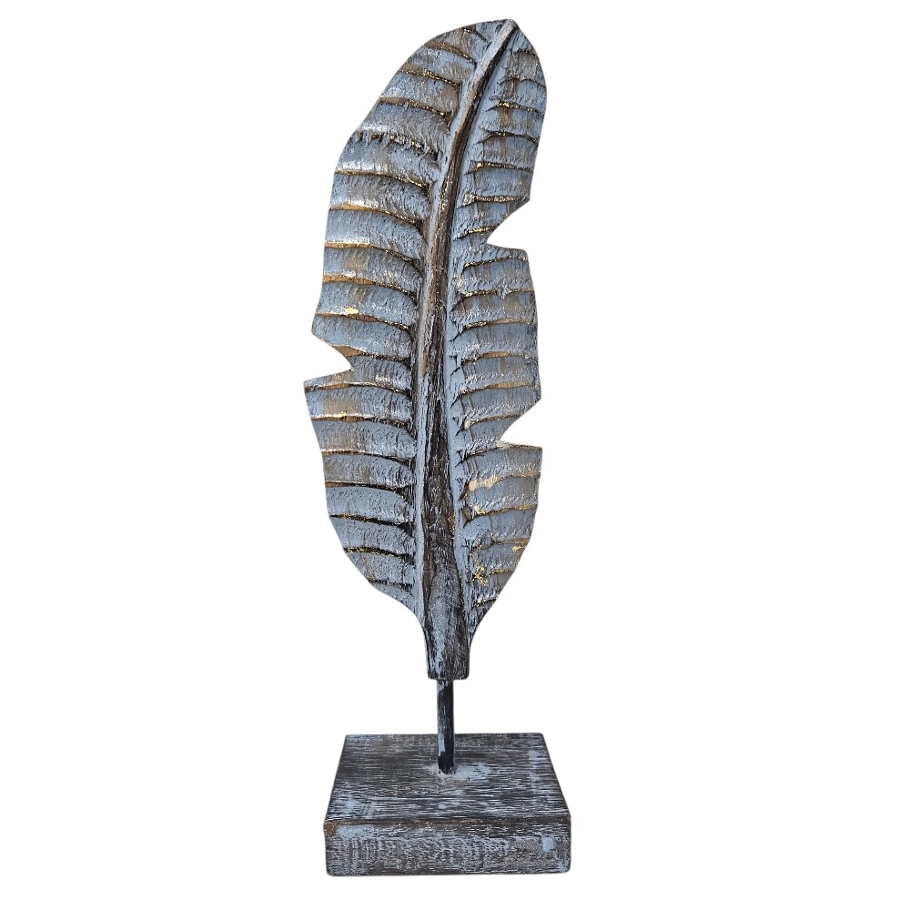 Decorative blue Wash Wooden Banana Leaf On Stand