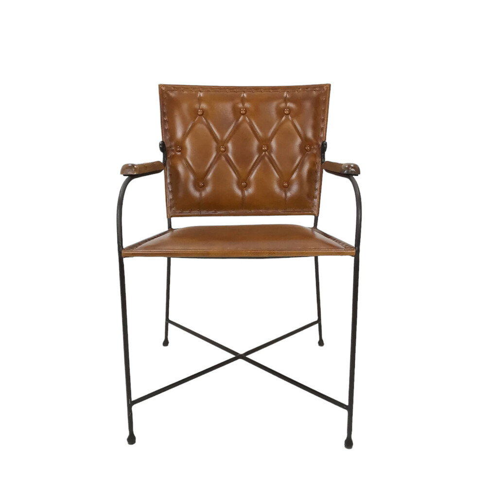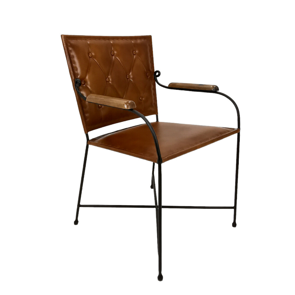 Hand Crafted Chair Complimented With Rich Tan Leather Seating And Supported By A Steel Frame