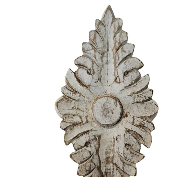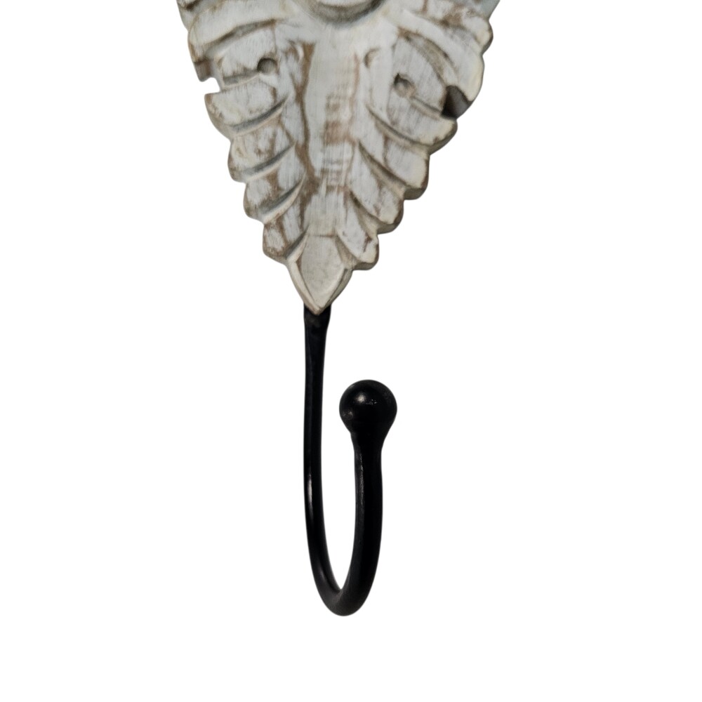 Transform your walls into a gallery of functional art with this exquisitely crafted wooden wall hook. Featuring an intricate, hand-carved floral motif with a distressed white-wash finish, this piece brings a touch of shabby-chic elegance and rustic warmth to your interior