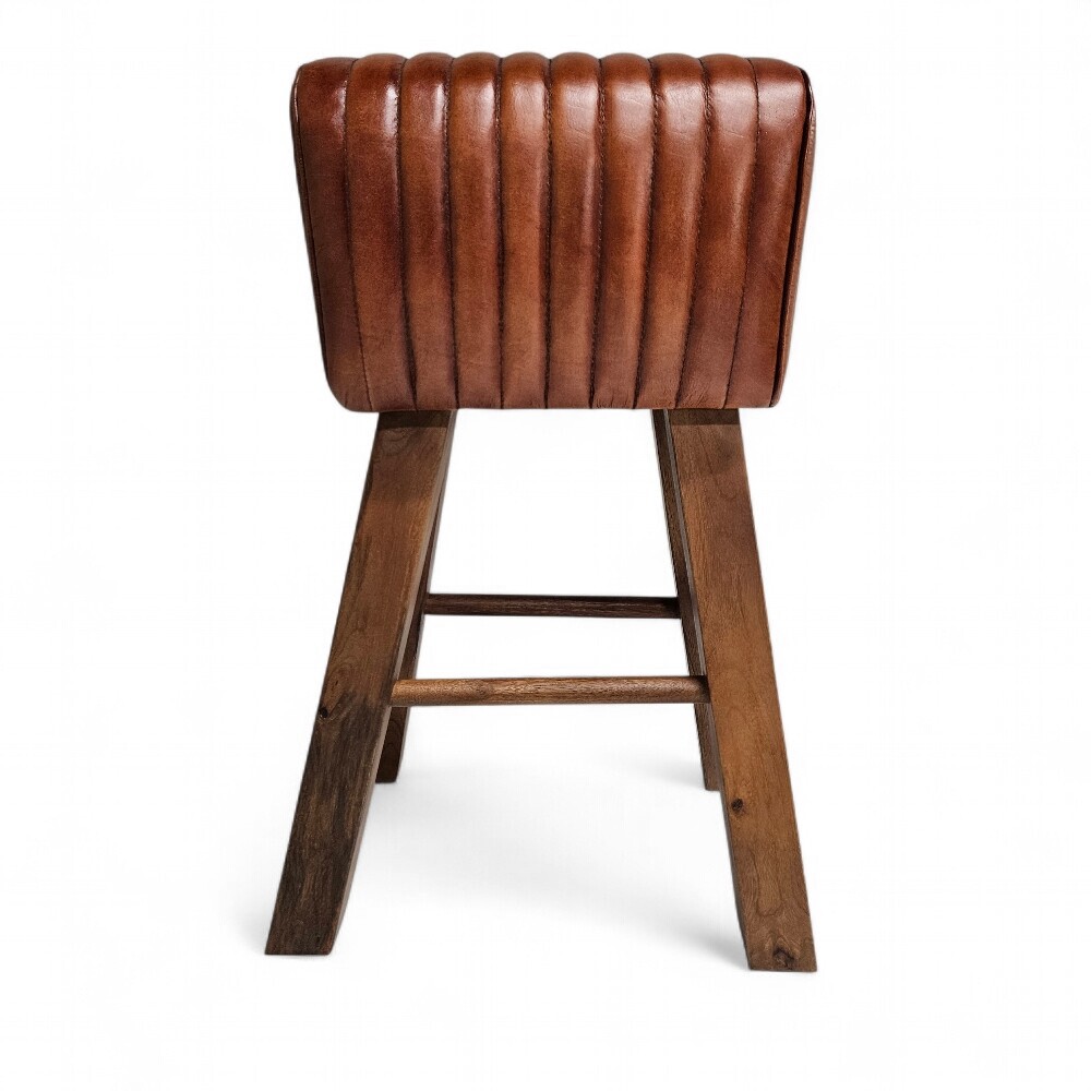 Meticulously handcrafted from premium top-grain leather with a distinctive hand-stitched saddle seat, this 75cm stool features a sleek architectural silhouette that serves as a timeless focal point for any interior