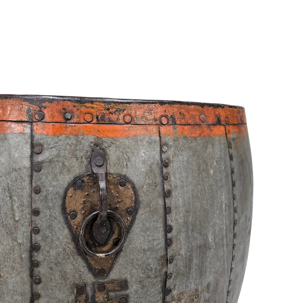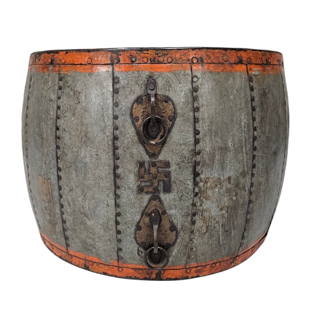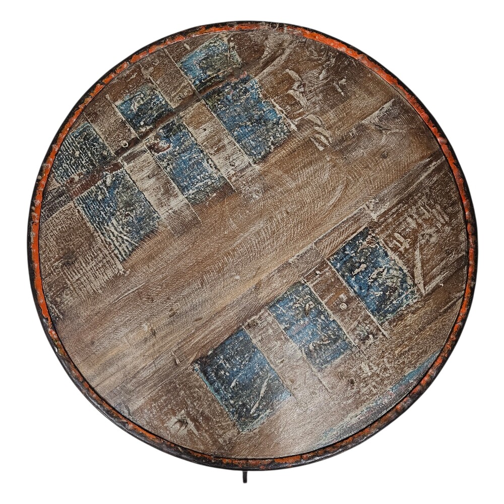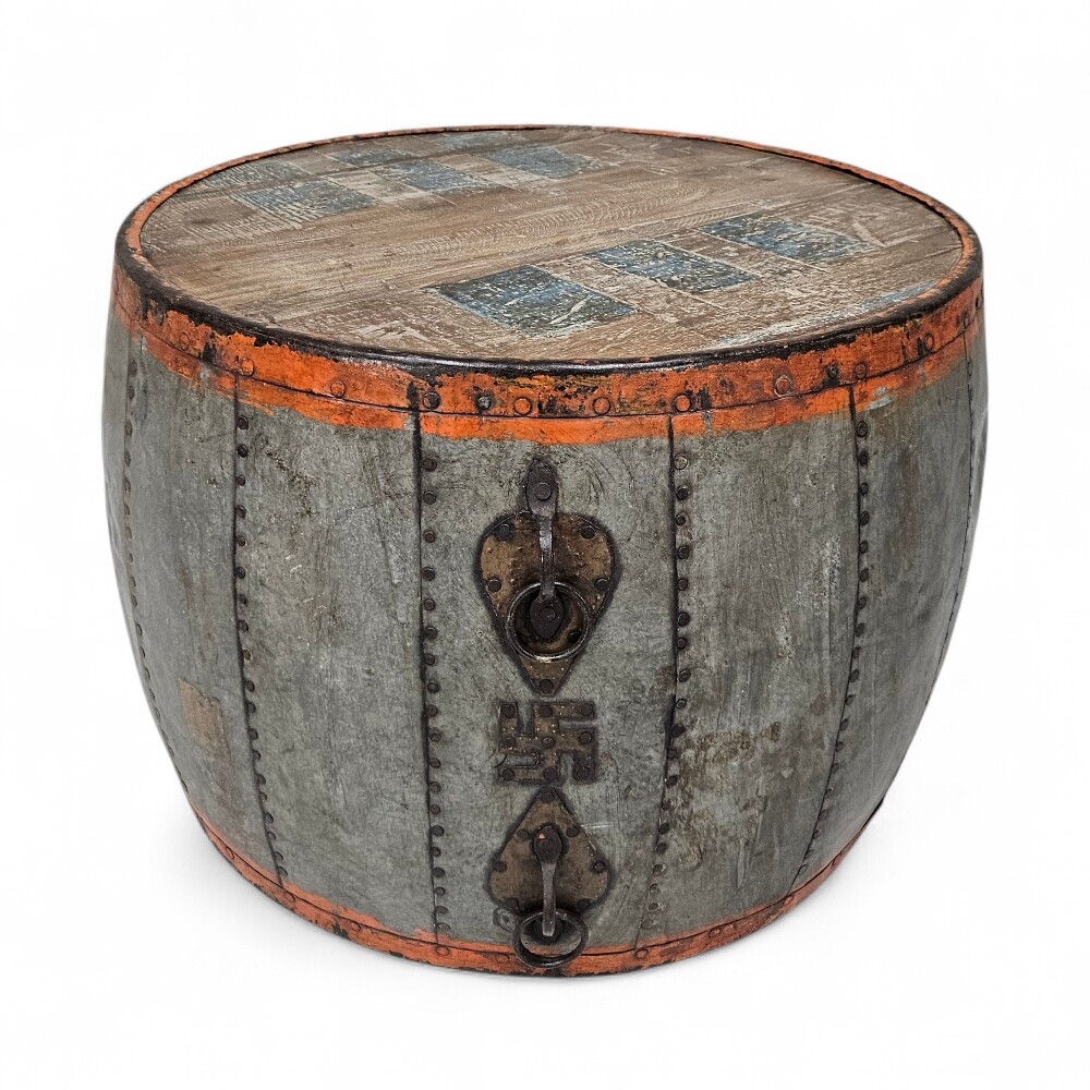 This 51 cm x 44 cm x 51 cm iron drum side table brings a unique, artisanal energy to any room, blending industrial durability with cultural artistry