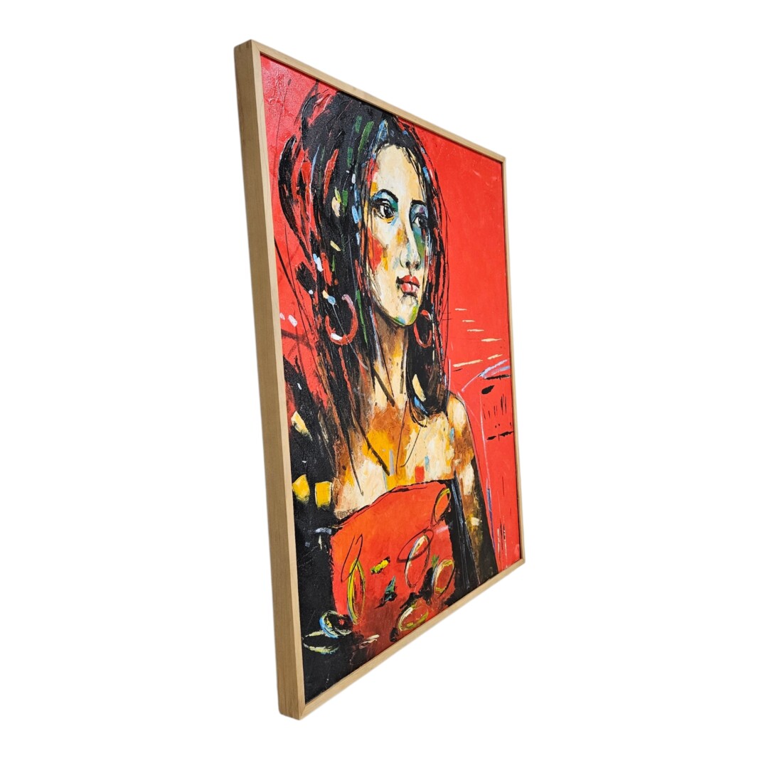 This bold Lady in Red Acrylic Painting exudes a powerful, expressive energy and contemporary allure, presented in a grand 100cm x 120cm format.
