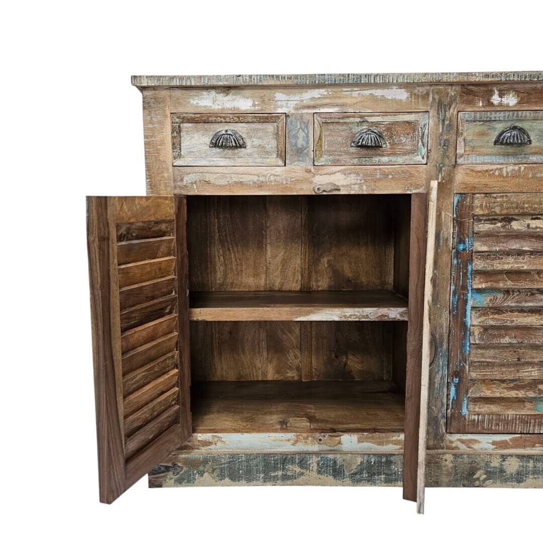 The natural textures of the mango wood bring warmth, while the mix of earthy and bold tones gives this sideboard a vibrant, eclectic charm