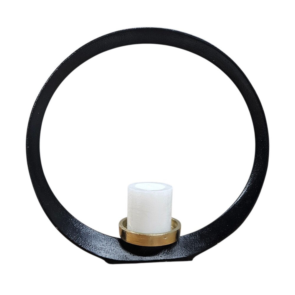 Featuring a hand-forged iron frame with a striking matte black finish, this candle holder showcases a sophisticated open-frame silhouette that emphasizes negative space and contemporary form