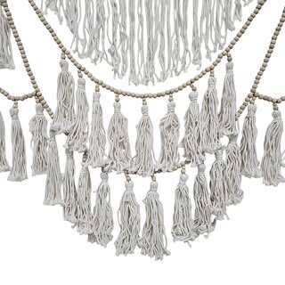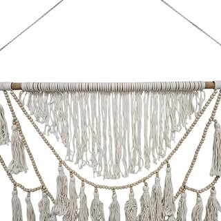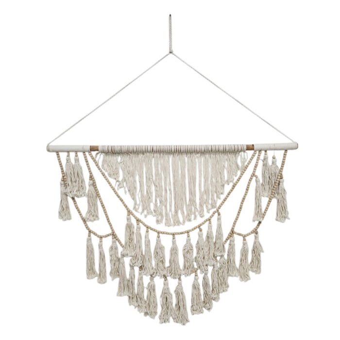 Crafted from high-quality cotton cord, this wall hanging showcases a harmonious blend of soft, neutral tones and tactile details