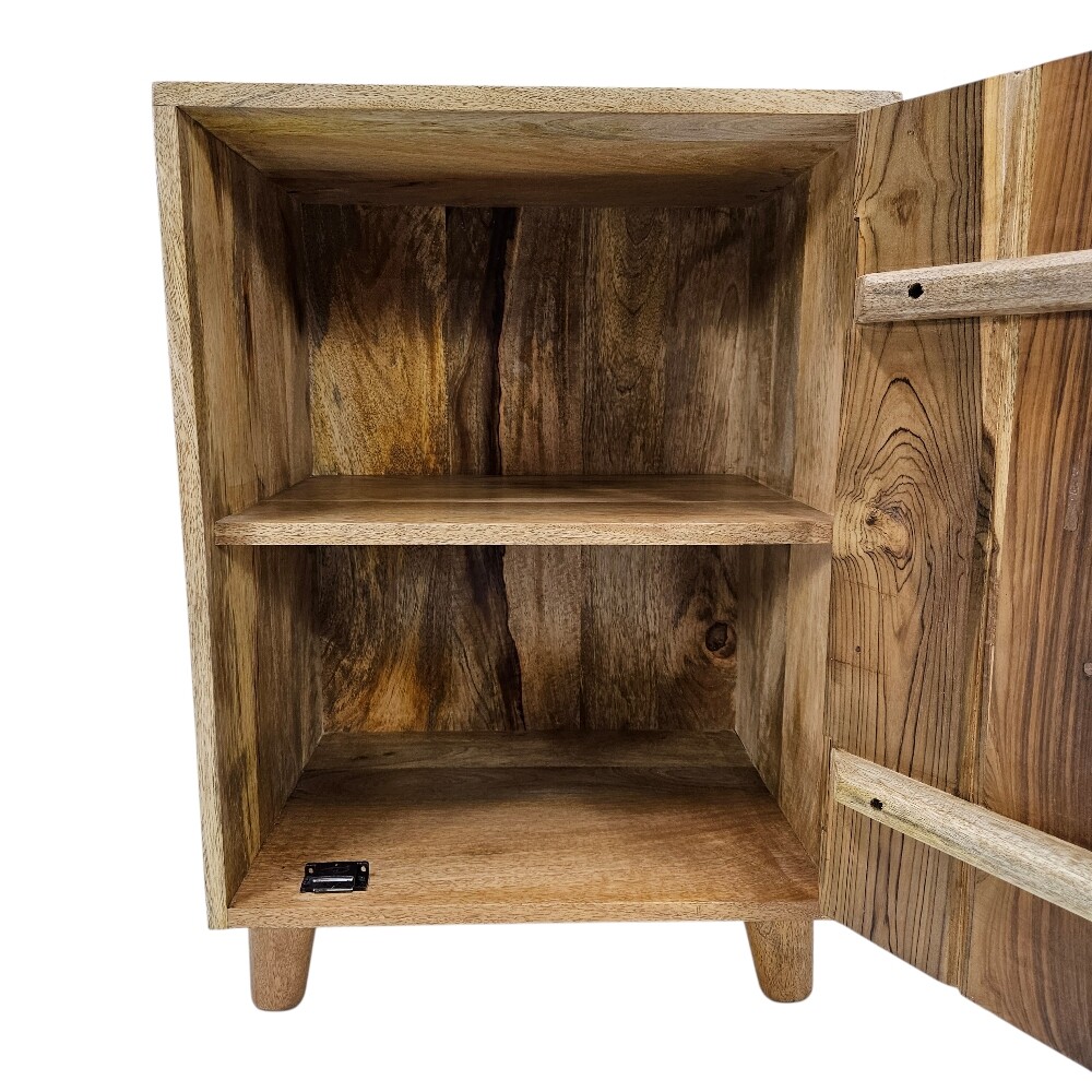 The Mandal Bedside Pedestal is an exquisite, compact furniture piece that brings the rich, artistic heritage of Bohemian and Ethnic style into the contemporary bedroom. Its design is centered around intricate, hand-carved detailing, making it a unique and charming statement piece