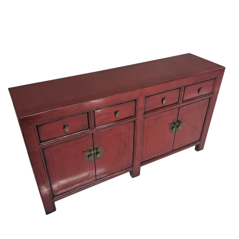 This organic 150cm (Length) x 40cm (Depth) x 82cm (Height) Ming Elm Sideboard is a masterful expression of Eastern-inspired heritage and bold contemporary design, finished in a striking high-gloss red paint to bring a sophisticated, high-energy rhythm to your living space or dining room