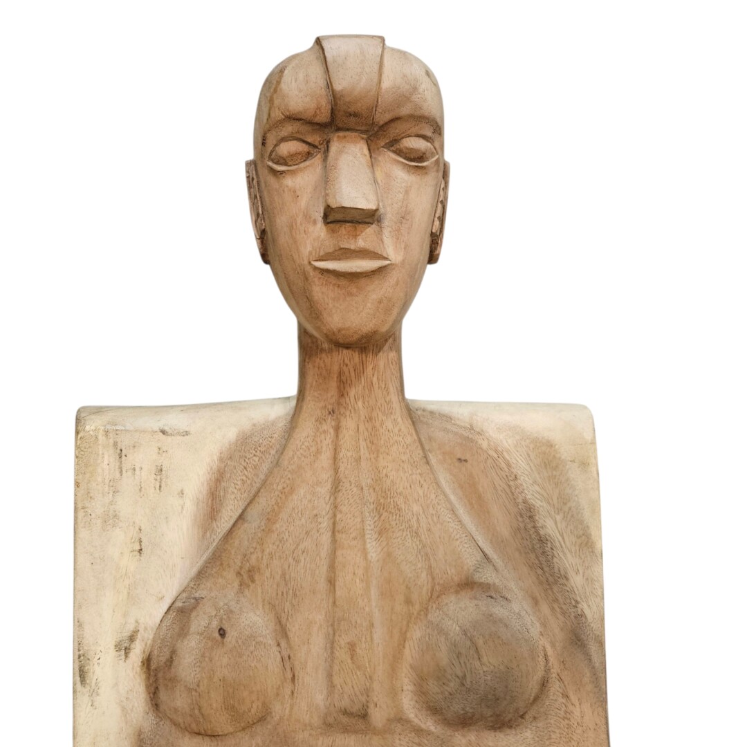 This stunning Nataki chair is a work of art, hand-carved from a single block of solid Suar wood. It combines functionality with a powerful, sculptural form, making it a dramatic statement piece for any home
