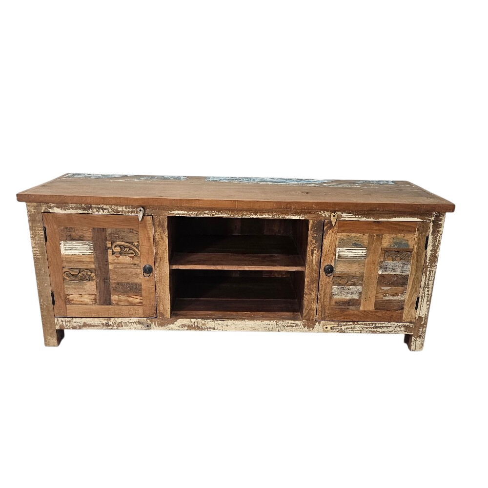 Bring a wave of coastal character to your entertainment space with the Nautical TV Unit, a masterfully handcrafted piece of mango wood furniture. Built from premium, sustainably sourced mango wood, this durable media console features a stunning distressed reclaimed wood finish that captures the breezy, sun-drenched aesthetic of a luxury beach house
