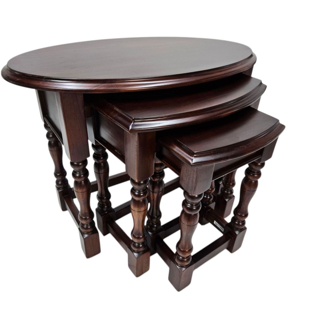 Elevate your living space with this timeless Set of 3 Nesting Mahogany Side Tables, crafted from rich, sustainably sourced mahogany wood
