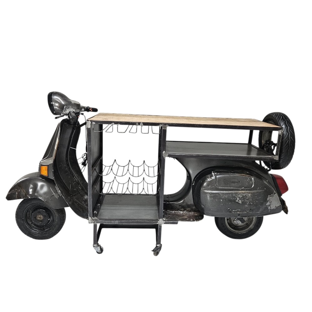 The functional headlight adds a nostalgic glow, making it the perfect focal point for a man cave, home lounge, or eclectic entertainment area