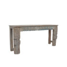 Made from solid mango wood, this 143cm (L) x 41cm (W) x 76cm (H) table features exquisitely hand-carved floral and geometric patterns along the apron and legs, creating a striking visual appeal