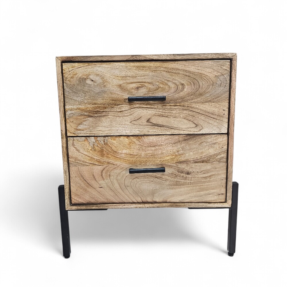 Designed for the modern home, this mango wood nightstand offers a streamlined, organized storage solution with two deep, spacious drawers