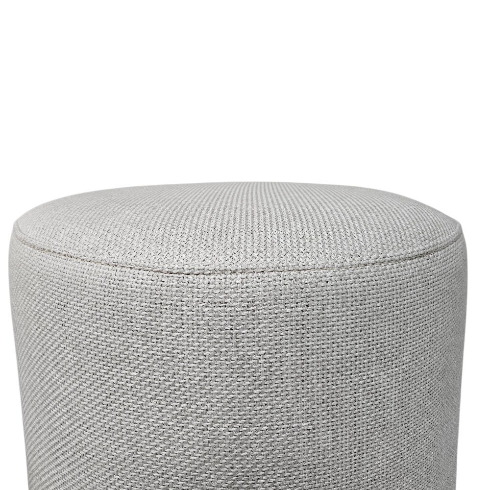 Its clean circular silhouette and plush, padded top provide a sophisticated look that seamlessly integrates into various interior styles, from contemporary to classic