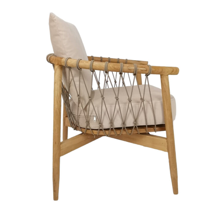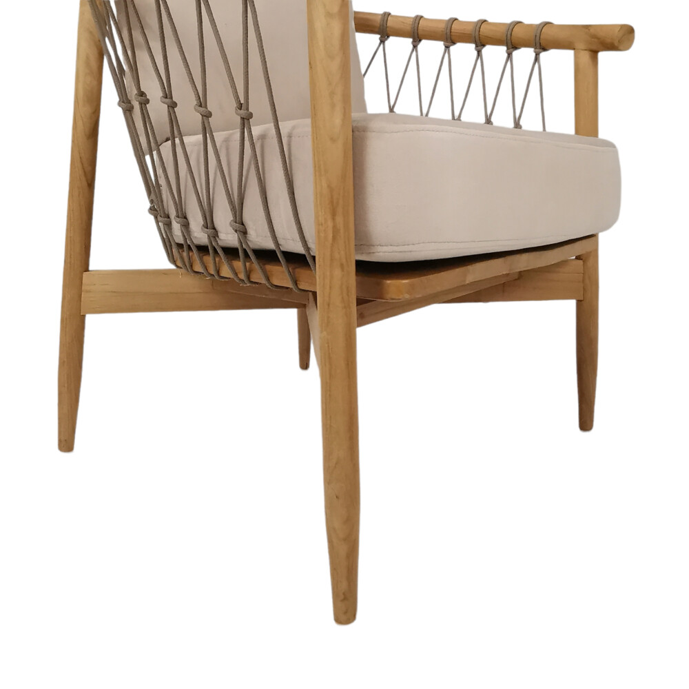 Crafted From Timeless Teak And Supported By Natural Teak Legs Complimented With Geometric Rope Detailing