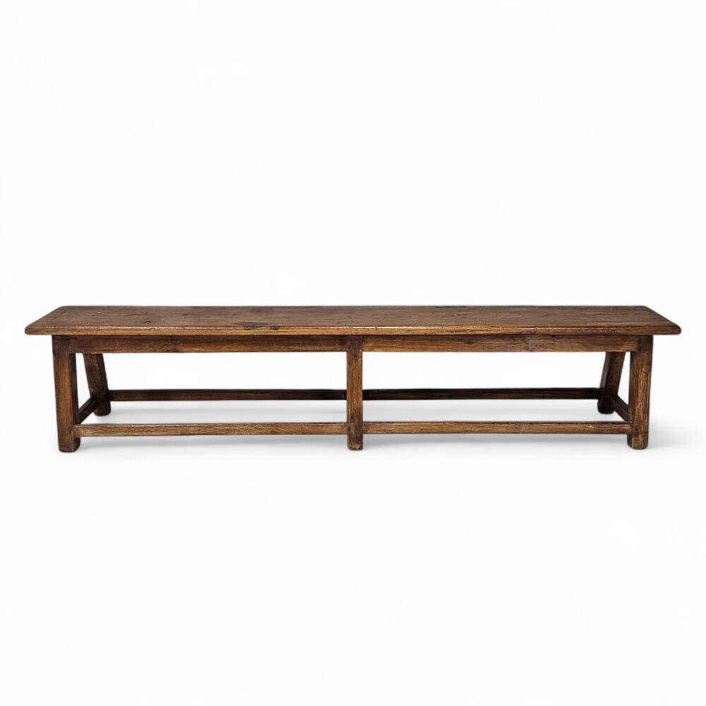Its simple four-leg design is reinforced with a longitudinal stretcher, ensuring a stable and durable structure that honors traditional woodworking styles