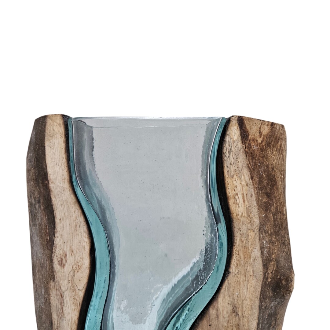 Since each piece of wood is naturally sourced and the glass is blown to fit, every sculpture is a one-of-a-kind creation. This stunning decorative piece offers the benefit of being a versatile accent for your home: use it as a captivating terrarium, a unique vase for floral displays, or simply as a sculptural centerpiece to introduce natural texture and artistic elegance to any living space or office