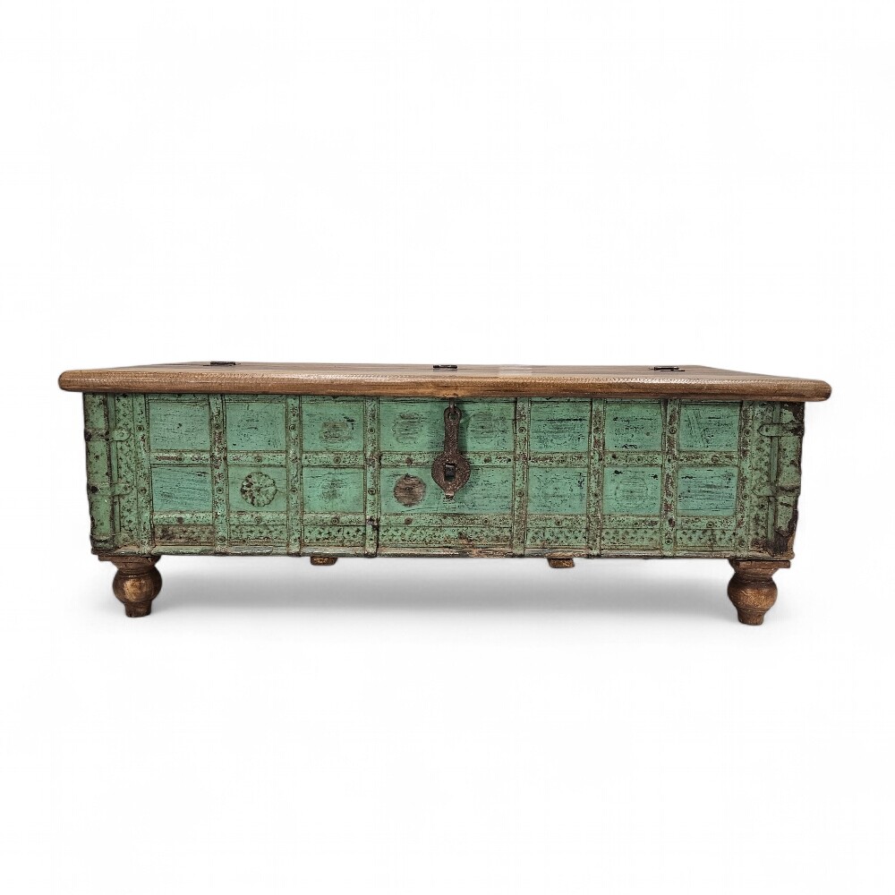 Enhance your living space with the Pitara Coffee Table Storage Trunk, a handcrafted piece that offers the dual benefit of a stylish surface and essential hidden storage to keep your room tidy