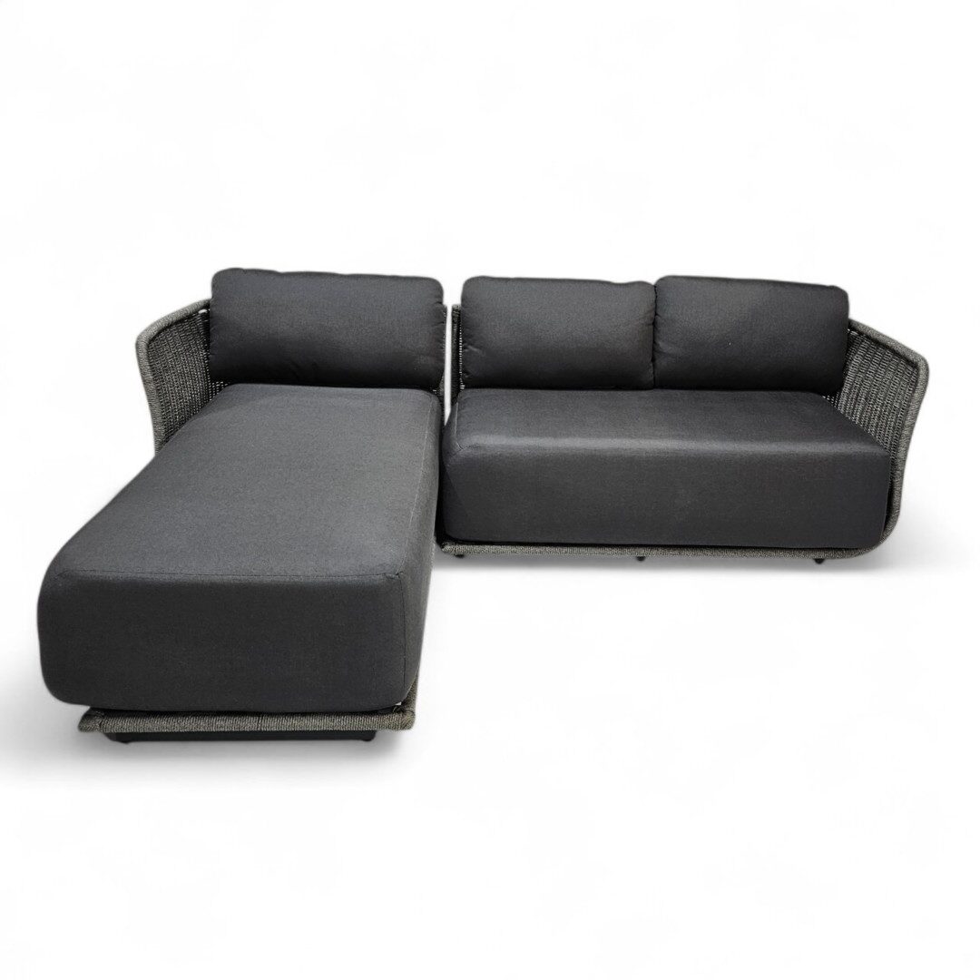 Experience superior comfort with generous, plush seating and back cushions. The cushions are finished in a sophisticated deep charcoal fabric