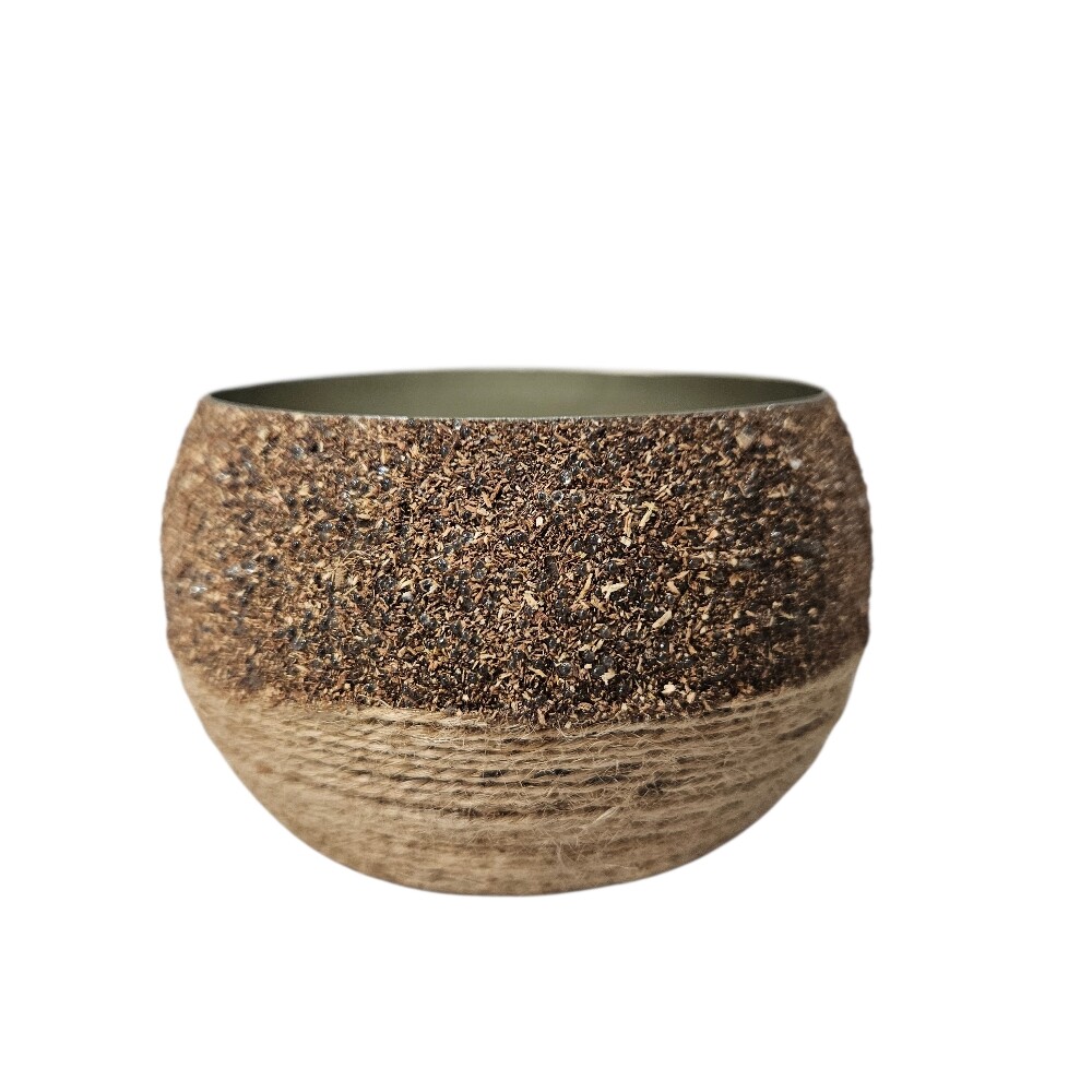 The Taliya Metal and Rope Pot measures 10cm (Length) x 10cm (Depth) x 7 cm (Height), offering a balanced, upright profile that fits easily onto shelves, desks, or windowsills. This piece is part of the Taliya collection, known for its distinctive mixed-media design that blends industrial metal with organic natural fibers