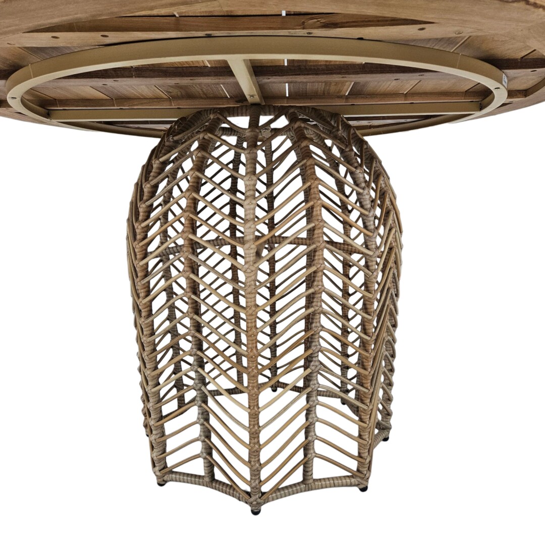 Introduce a piece of refined, resort-inspired elegance to your sheltered outdoor space with the Taureg Dining Set. This stunning 4-seater ensemble perfectly balances the warmth of natural wood with the texture of modern woven elements