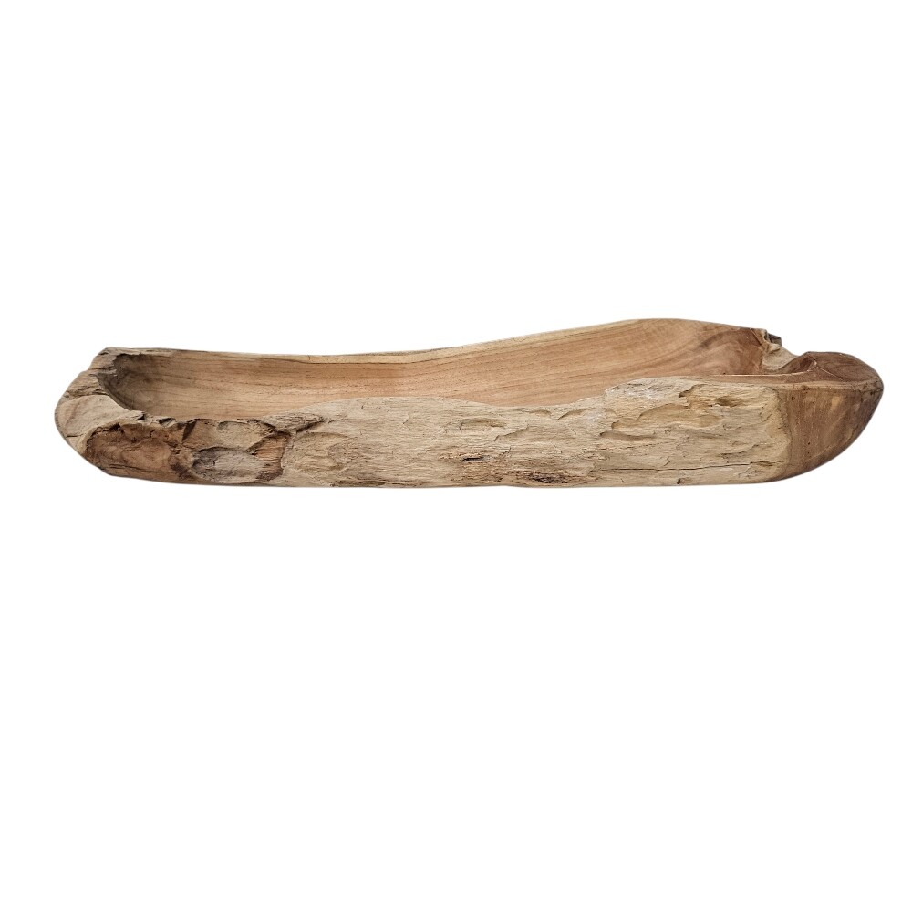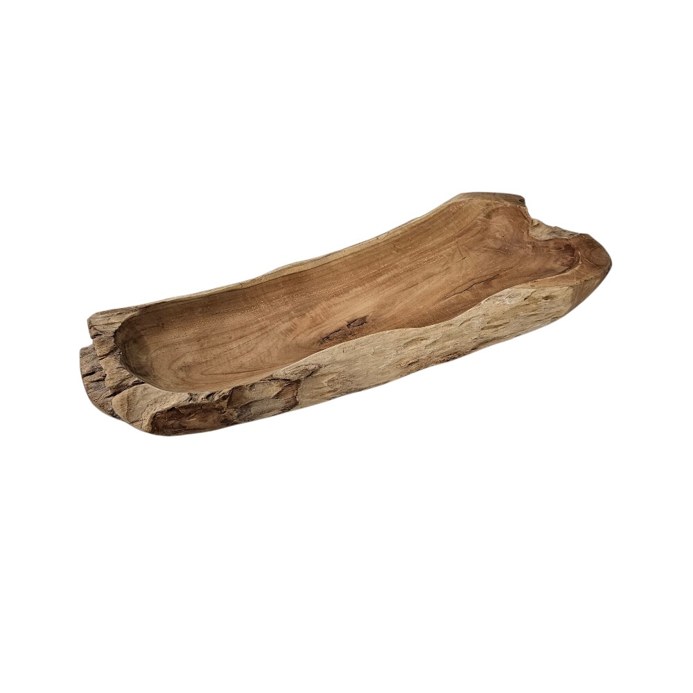 This organic 60cm (Length) x 22cm (Depth) x 6cm (Height) Erosi Teak Wood Serving Bowl is a masterclass in natural artistry, bringing the raw, unrefined beauty of Indonesian teak forests directly to your dining table or living space