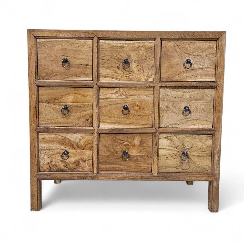 Functionally, the chest contains multiple spacious drawers for organizing clothing, linens, or miscellaneous items, ensuring your bedroom or living area remains neat. Its solid teak construction provides substantial weight and lasting durability, ensuring this piece will be a long-term fixture in your home décor