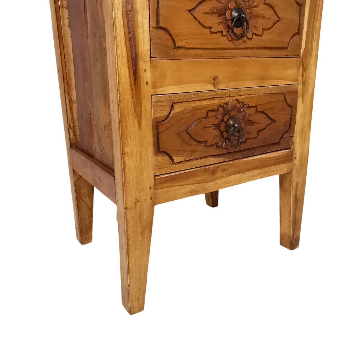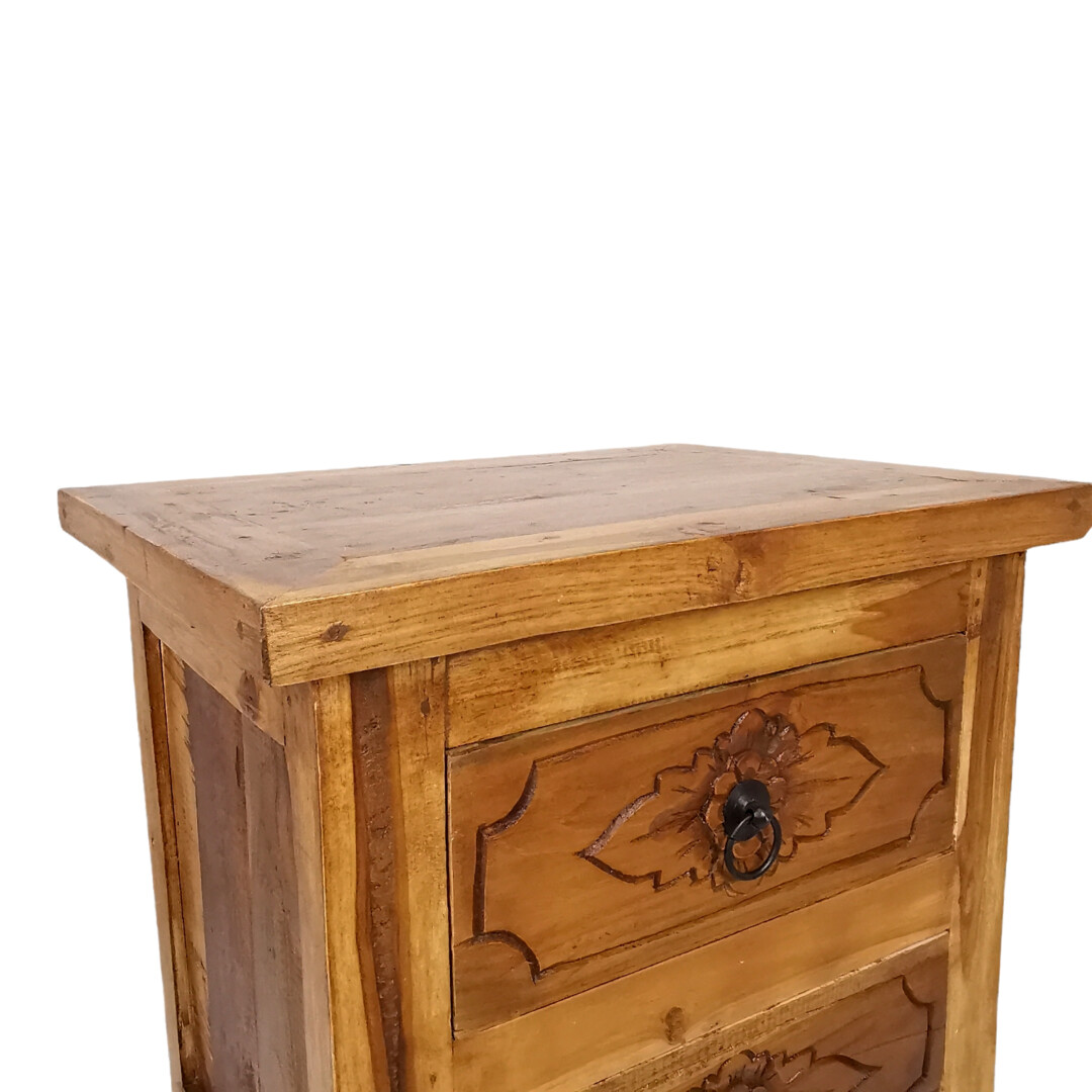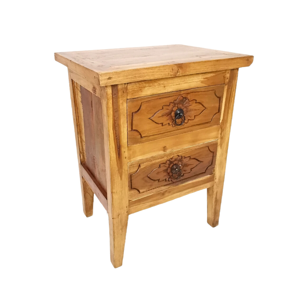 Hand Carved 2 Drawer Design Enhance This Bedside Pedestals Rustic Aesthetic